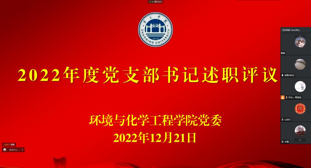 本网讯 12月21日,环境与化学工程学院党委以线上形式,组织召开党支部书记抓基层党建工作述职会,学院党委委员、组织员及师生党支部书记参加,学院党委书记李湘同志主持。