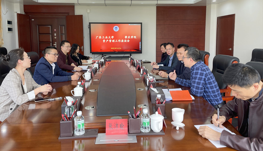 本网讯 3月2日,广东工业大学国有资产管理办公室主任洪伟强一行4人到永利官网交流资产管理工作。广东工业大学帮扶工作队队长刘怡军、资产管理处处长毛致光、副处长赵金等参加座谈交流。