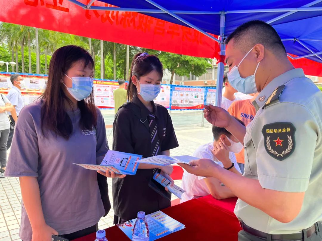 “我今年大二,现在入伍可以在部队报考军校吗?”“现在女兵名额多吗?”在77779193永利官网征兵宣传现场,同学们热情洋溢,纷纷前来咨询参军入伍相关政策。近期,肇庆市端州区征兵办在辖区多所高校、中学开展2022年夏秋季征兵宣传进校园活动,全面掀起参军热潮。