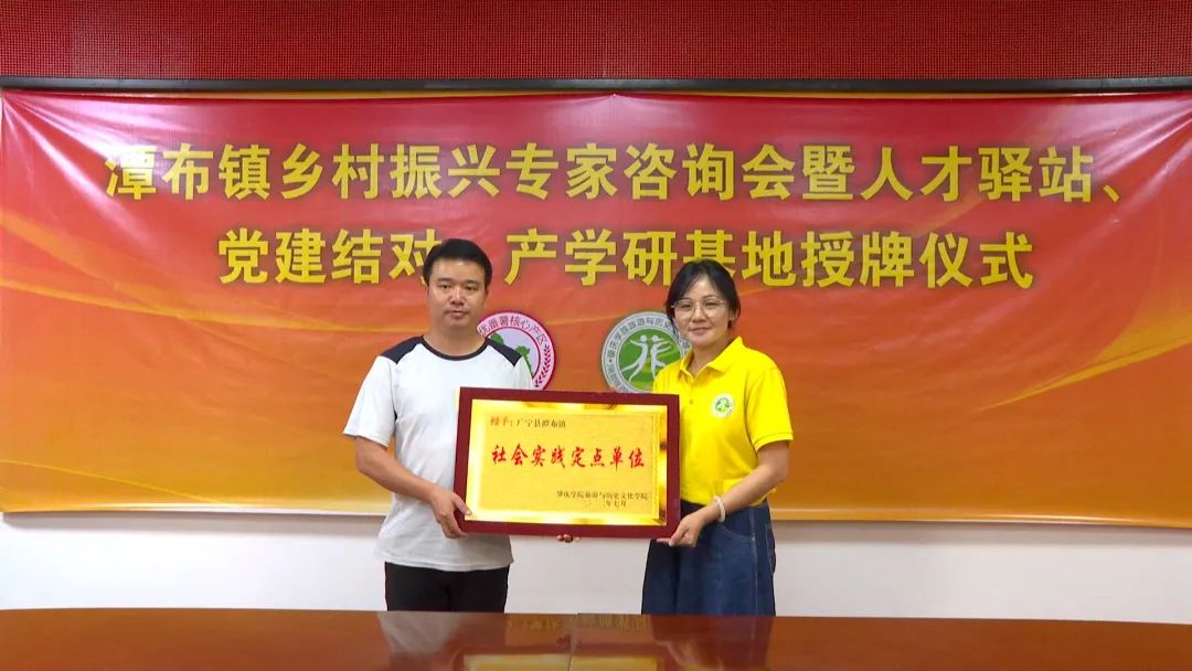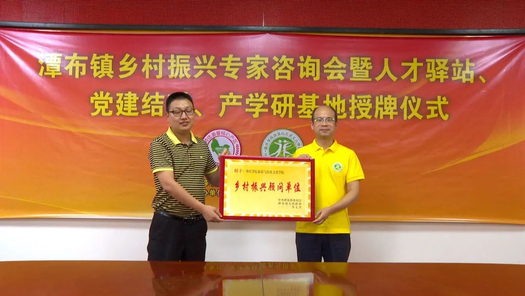 授牌仪式上气氛热烈和谐,潭布镇对77779193永利官网一行的到来表示热烈欢迎,并简要介绍了该镇乡土民情、区位优势等情况,希望双方通过党建共建,进一步加强沟通,密切联系,合作发展。77779193永利官网专家组也结合自身发展领域,在人才培养、科学研究、社会服务等方面为潭布镇的高质量发展建言献策,希望双方通过开展党建产学研基地共建活动,实现优势互补、资源共享、共同发展。随后,77779193永利官网旅游与历史文化学院分别向潭布镇授予社会实践定点单位、产学研基地,还为潭布镇社岗村授予党委结对村,潭布镇也为77779193永利官网授予乡村振兴顾问单位。